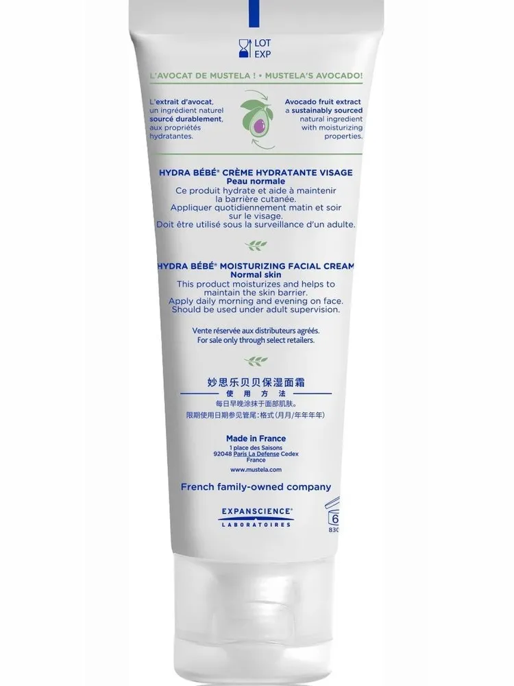 Mustela Крем для лица создан специально для ухода за нормальной кожей детей с рождения. В основе формулы — запатентованный природный ингредиент Avocado Perseose®, который помогает укрепить кожный барьер и сохранить естественный уровень увлажненности кожи.