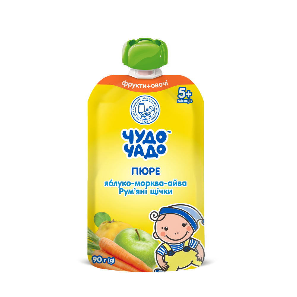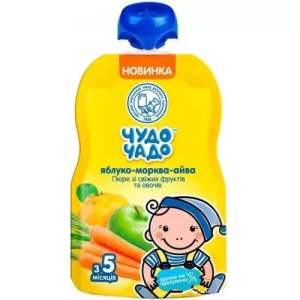 Пюре Чудо-Чадо Pouch Яблоко, морковь и айва, с сахаром и витамином С - максимум здоровья для вашего чада. Вкусное, сладкое, питательное пюре отлично подходит для питания крохи. Тандем из айвы, моркови и яблока обеспечит Вашему малышу крепкий иммунитет.