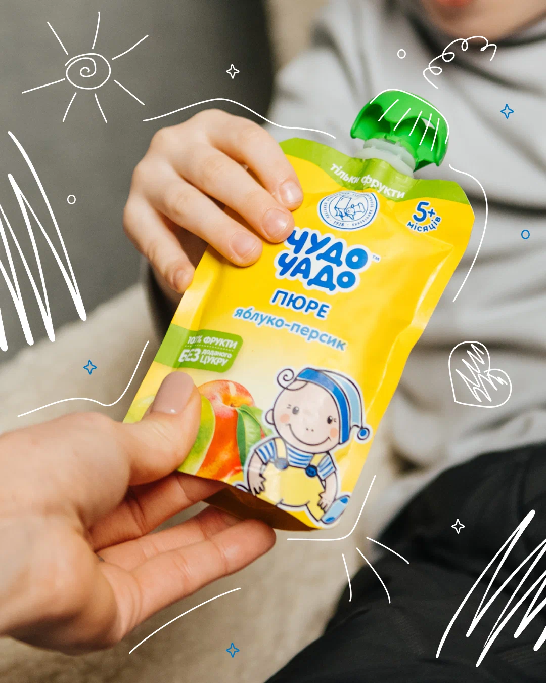 Фруктовое пюре «Чудо-Чадо» Манго-Яблоко-Банан, 90 г – это натуральный и вкусный продукт для детей с 6 месяцев. Изготовлено из спелых манго, украинских яблок и бананов без добавления сахара, консервантов, красителей и ГМО. Пюре богато витаминами (С, А, группы B), минералами (калий, магний) и клетчаткой, которые поддерживают иммунитет, способствуют здоровому пищеварению и росту малыша.Нежная однородная текстура и экзотический сладкий вкус манго в сочетании с яблоком и бананом делают пюре идеальным для прикорма.