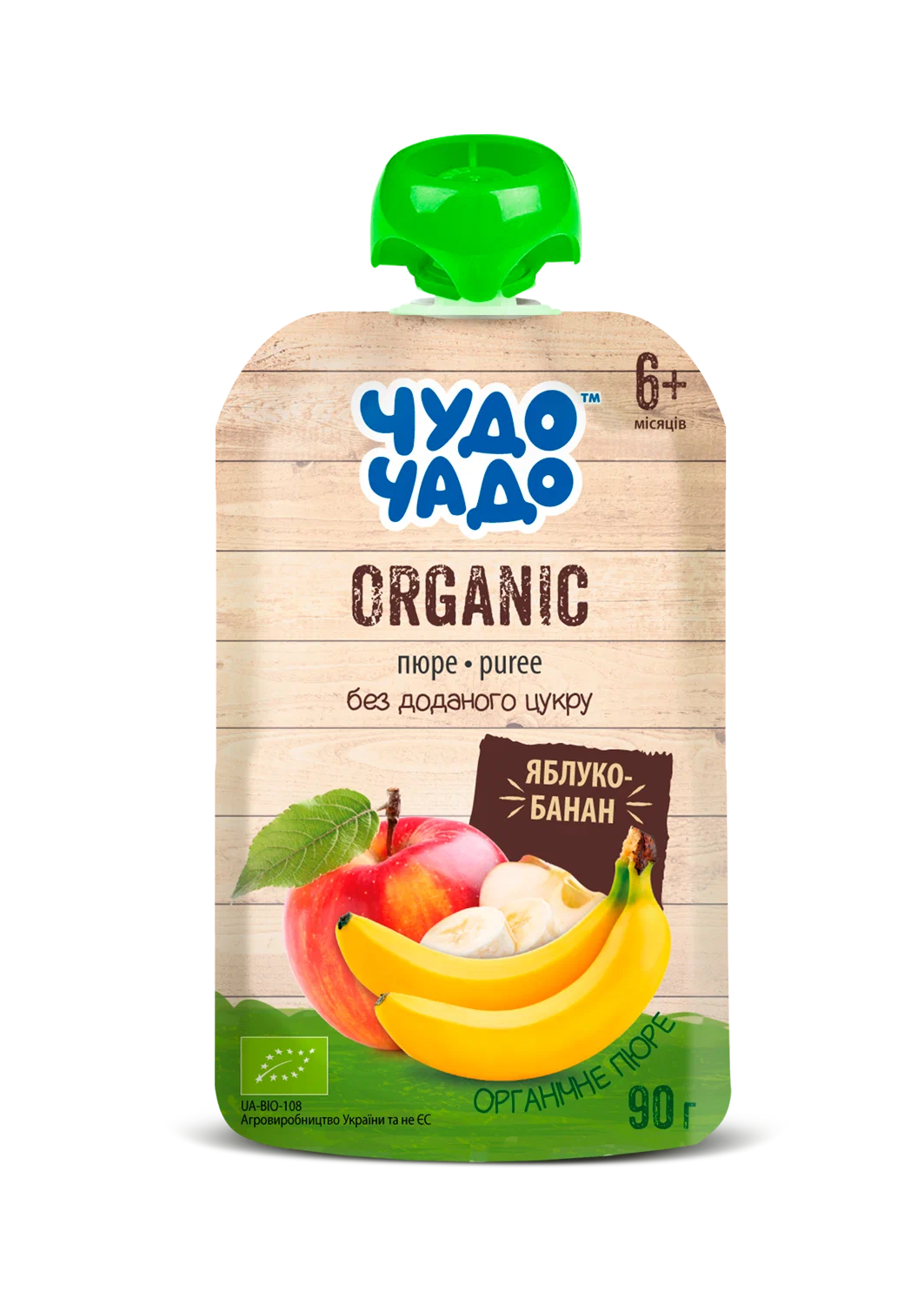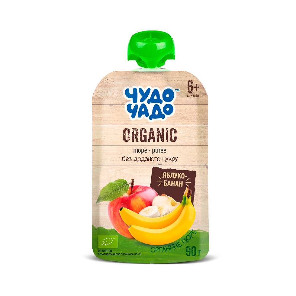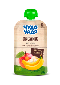 Органическое фруктовое пюре «Чудо-Чадо» яблоко-банан без сахара, 90 г