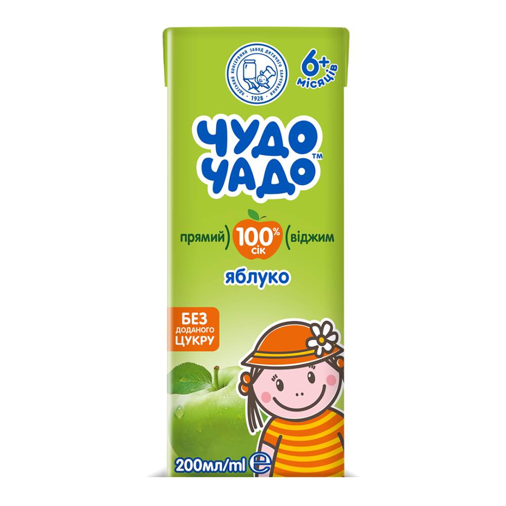 Сок яблочный прямого отжима «Чудо-Чадо» без сахара, 200 мл – это натуральный продукт для детского питания, предназначенный для малышей с 6 месяцев.