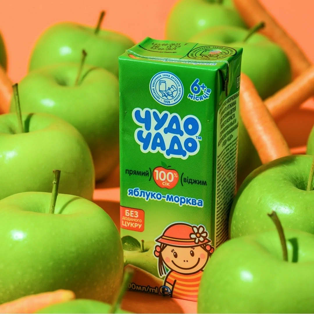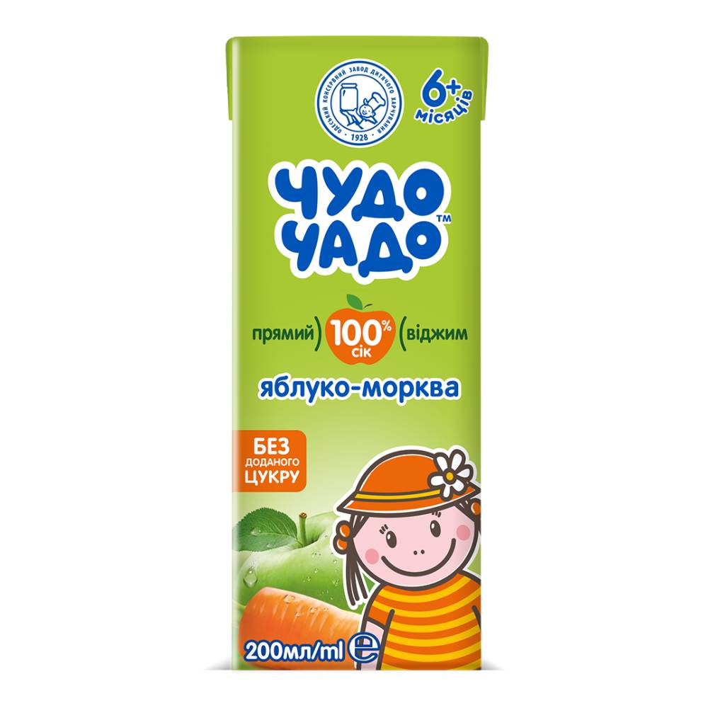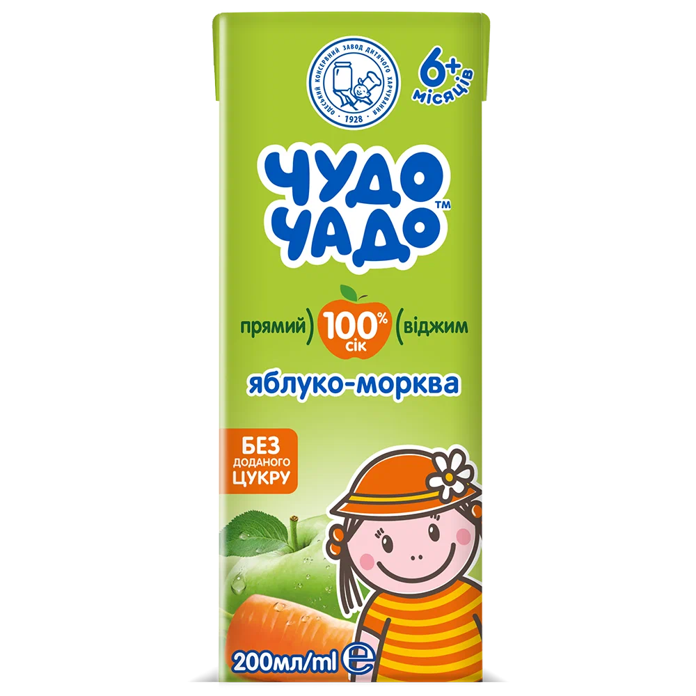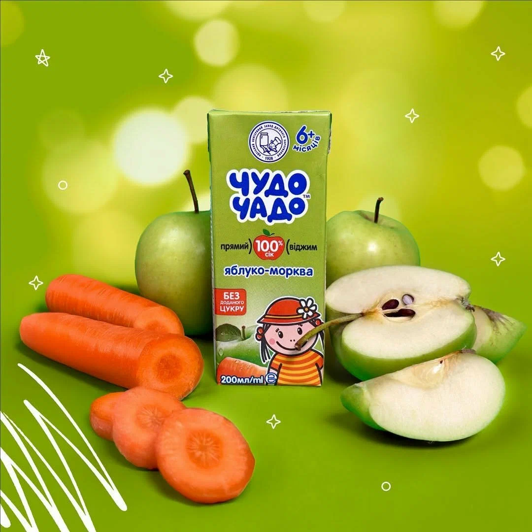Яблочно-морковный сок прямого отжима «Чудо-Чадо» – это натуральный продукт для детского питания, предназначенный для малышей с 6 месяцев.