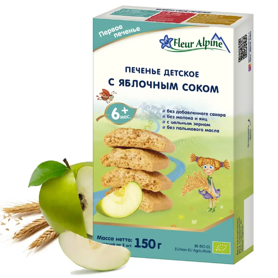 Нежное, мягкое печенье без добавленного сахара. В качестве подсластителя в печенье используется яблочный сок. Придется по вкусу малышам (и их родителям), отдающим предпочтение продуктам с умеренной сладостью. В составе нет молока и яиц. Содержит цельнозерновую муку.